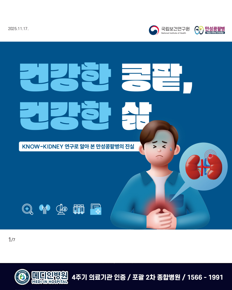 1. 병원에서 제공하는 건강관련정보는 개략적이며 일반적인 것으로서 특정인의 의견에 지나지 않으며 어떠한 경우에도 전문적인 의학적 진단, 진료, 치료를 대신할 수 없습니다.